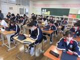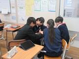 1組、2組、どちらのクラスも学級目標が決まり、デザインを決定したり、作ったりしていました。1組、各班から選ばれたデザインを作成の意図を各代表が説明し、投票しました。代表の説明のあとの拍手がとってもあたたかかったです。2組、このクラスは個人でデザインを作っているところでした。それぞれ個性があって、また工夫もあって、優れた作品ばかりでした。タブレットで絵も描けるのですね。しかも、色も形も自分の思いのままに・・・・。すごい! どちらのクラスも、目標にちなんだ素敵なデザインが完成するといいですね。