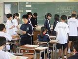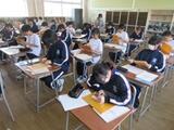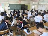 1組 美術 オリエンテーション(評価と評定について、授業記録の書き方について、クロッキー帳・ファイル記名) 最後、振り返りの時間に授業記録を一人一人が書きました。素晴らしい集中力! 先生の説明を一生懸命に聞いていました。 2組 数学 まず、隣の人とペアで1分間でかけ算が何問解けるか。全部で40問。30秒くらいで終わっている人もいました。正の数・負の数。身の回りのプラス、マイナスを探しました。2組も素晴らしい集中力。「絶対に理解するぞ」と一生懸命にノ考えたり、ノートをとったりしていました。1年生、新しい環境なのに一人一人よく頑張っていますね。スゴイ!