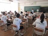 1組 社会 天平文化の復習から 大きな特長として①中国風の文化であること②仏教の影響を受けていること 等を確認していました。先生の話に真剣に耳を傾け、一生懸命ノートをとる姿、すばらしかったです。 2組 数学 「栗拾いに行って集めた栗を全員に分ける」 9個ずつ分けると3個足りない 8個ずつ分けると4個余る さあ、実際に拾った栗の数は何個でしょう?また人数は何人でしょう? という問題をみんなで考えました。席の近くの人と「あーだ」「こーだ」と追究している姿、とてもよかったです!